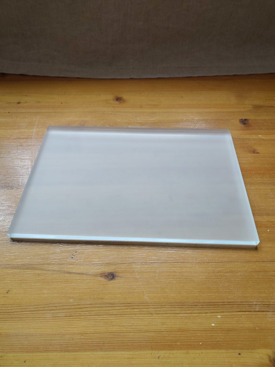 Die hier angebotene Anreibeplatte besteht aus Glas. Sie verfügt auf einer Seite über eine angeraute Oberfläche und hat eine Fläche von 200 x 300 mm und ist 10 mm dick.